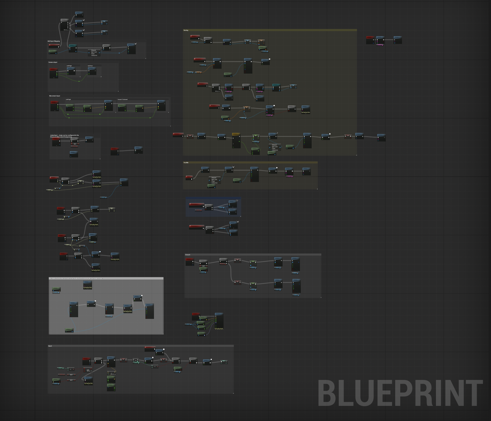 There are a lot of blueprints for the main character, so I will break down the implementations below.