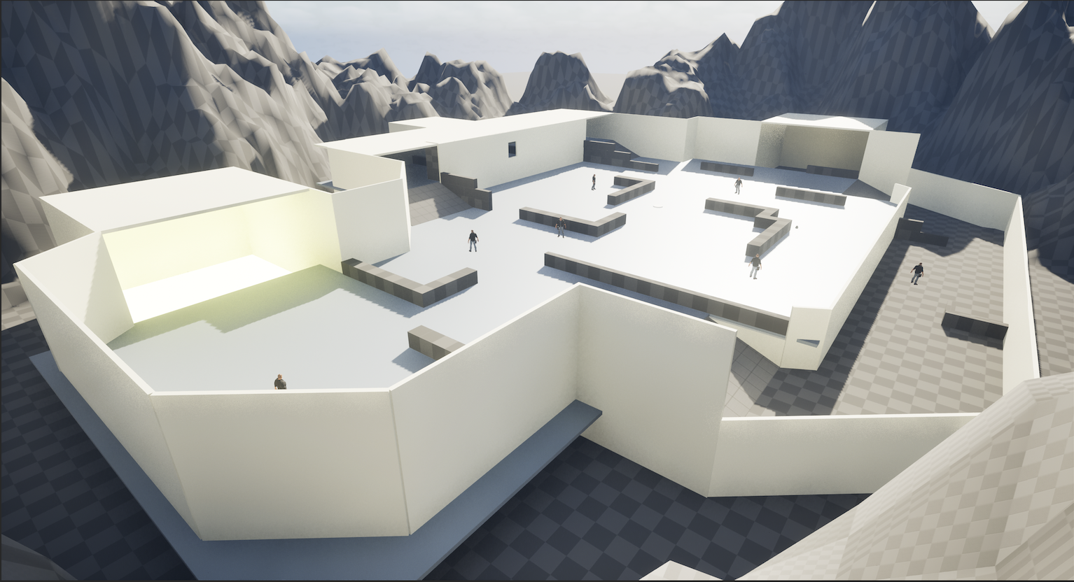 I carefully crafted the level to allow players to feel fully immersed in the stealth gameplay. To do this, I created long pathways, corners and barriers to hide behind, as well as low and high paths. There are intentional moments of relief built into the level that allows players to catch their breath and plan their next move. There are also multiple different paths for players to take. While designing all of this, I also carefully thought out the enemies' sight lines and where players could hide or dash to the next cover to avoid detection.